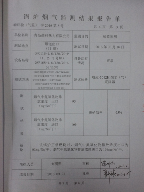 熱源一期3-5#煙氣脫硝項目驗收監(jiān)測報告